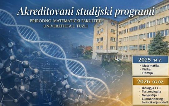AKREDITOVANI STUDIJSKI PROGRAMI PRIRODNO-MATEMATIČKOG FAKULTETA Posted on 3. Aprila 2026.3. Aprila 2026. by pmf Prirodno-matematički fakultet Univerziteta u Tuzli već decenijama gradi i njeguje visokestandarde kvaliteta u obrazovanju i naučnoistraživačkom radu. Kroz savremene studijskeprograme, kontinuiran... Read More