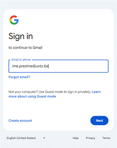 Slika 1. Forma za prijavu na e-mail putem Google Workspace platforme